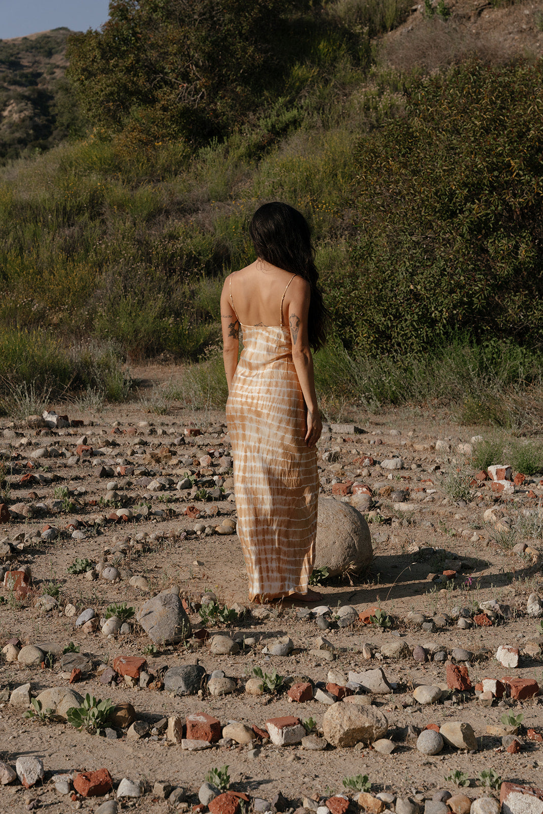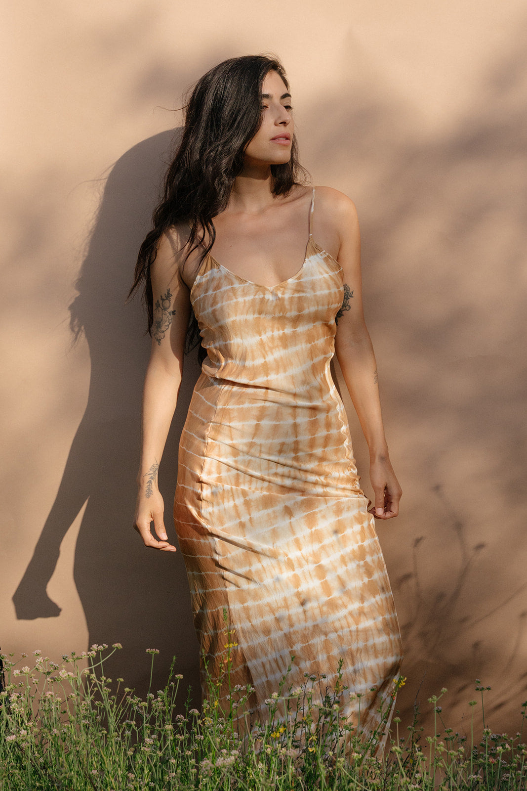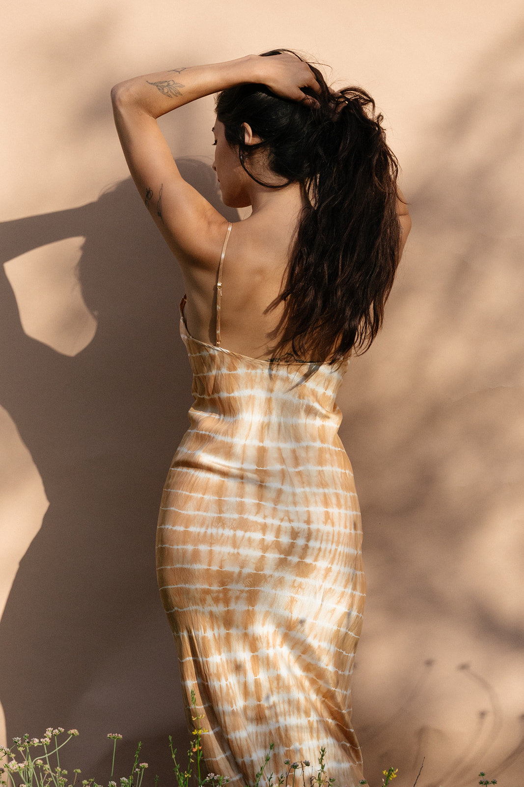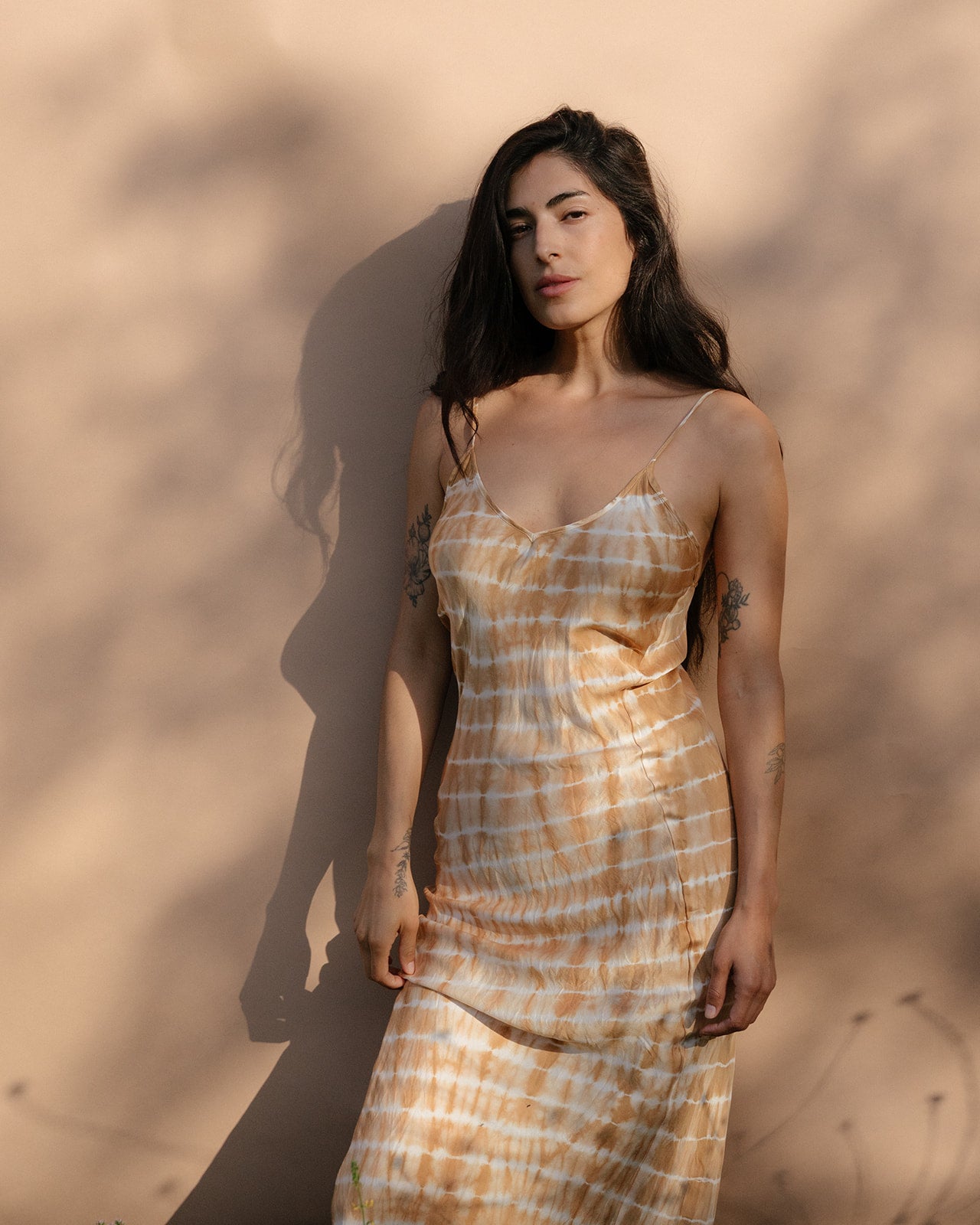 A tie dyed version of our own bias cut classic as we’ve been doing this one since our first season in 2012 and is trademarked to our brand with the unique seam construction where they are pushed forward to accentuate a more contoured silhouette for more fullness and seamless news at the back. Adjustable straps to customize length and fit at chest. This slip is our daily piece we wear under sheer over layers, with a t-shirt or sweater/sweatshirt or just as is.