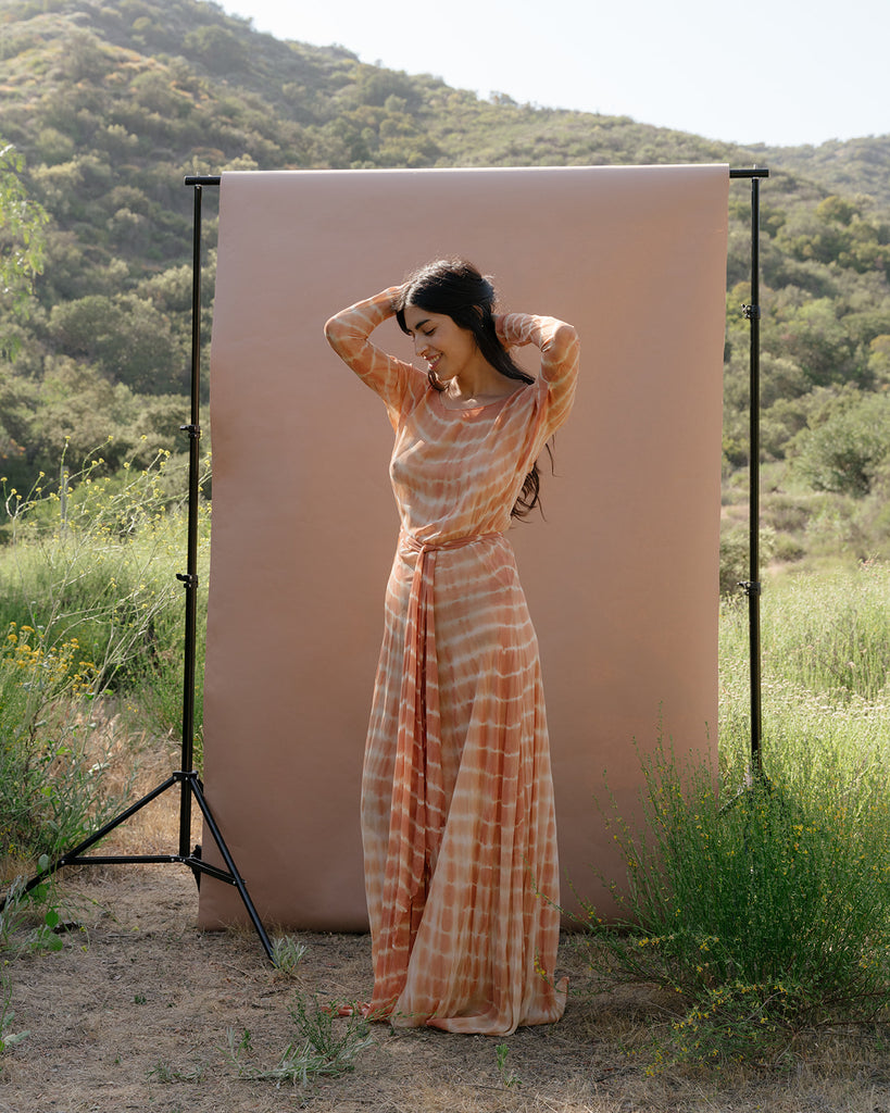 We first introduced tie dye to our sumptuous solids for Collection 2020 and we continue on with the experimentation