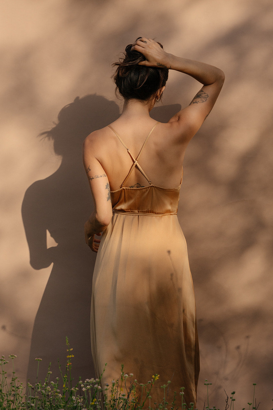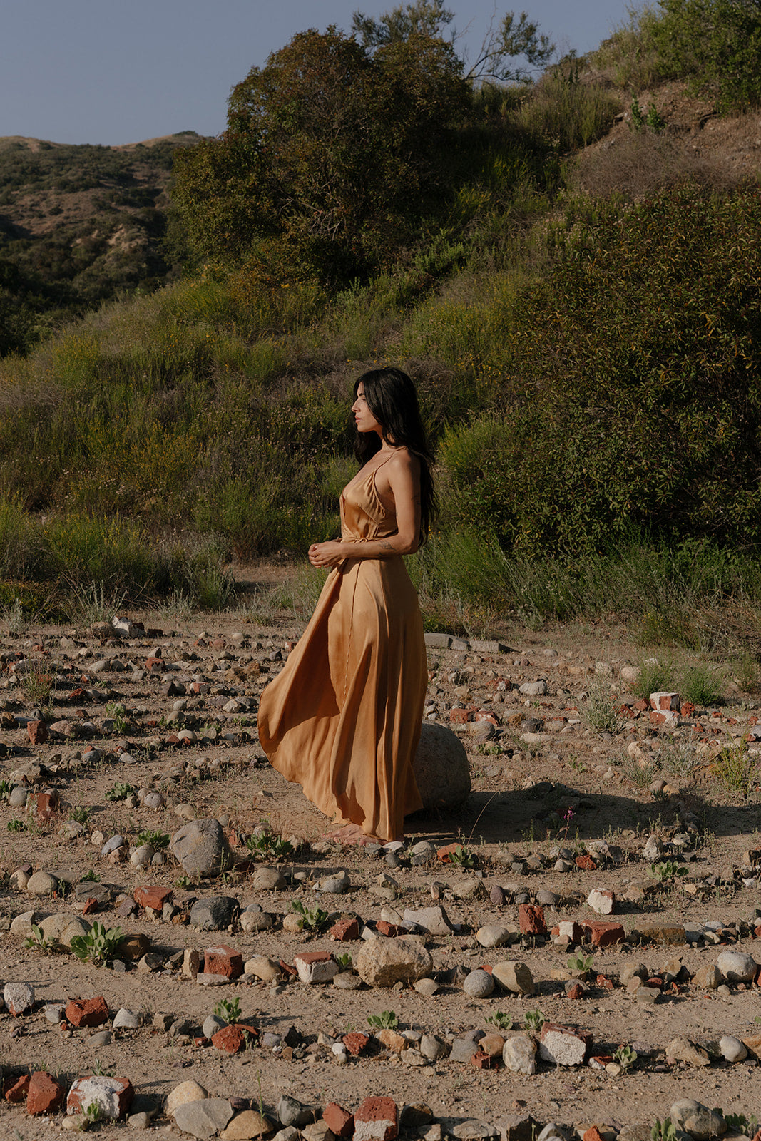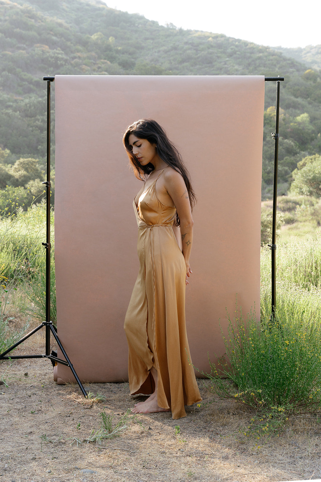 Pictured in Ancient Clay this top is hand dyed with mango and mahogany leaves and sacred Balinese flowers.